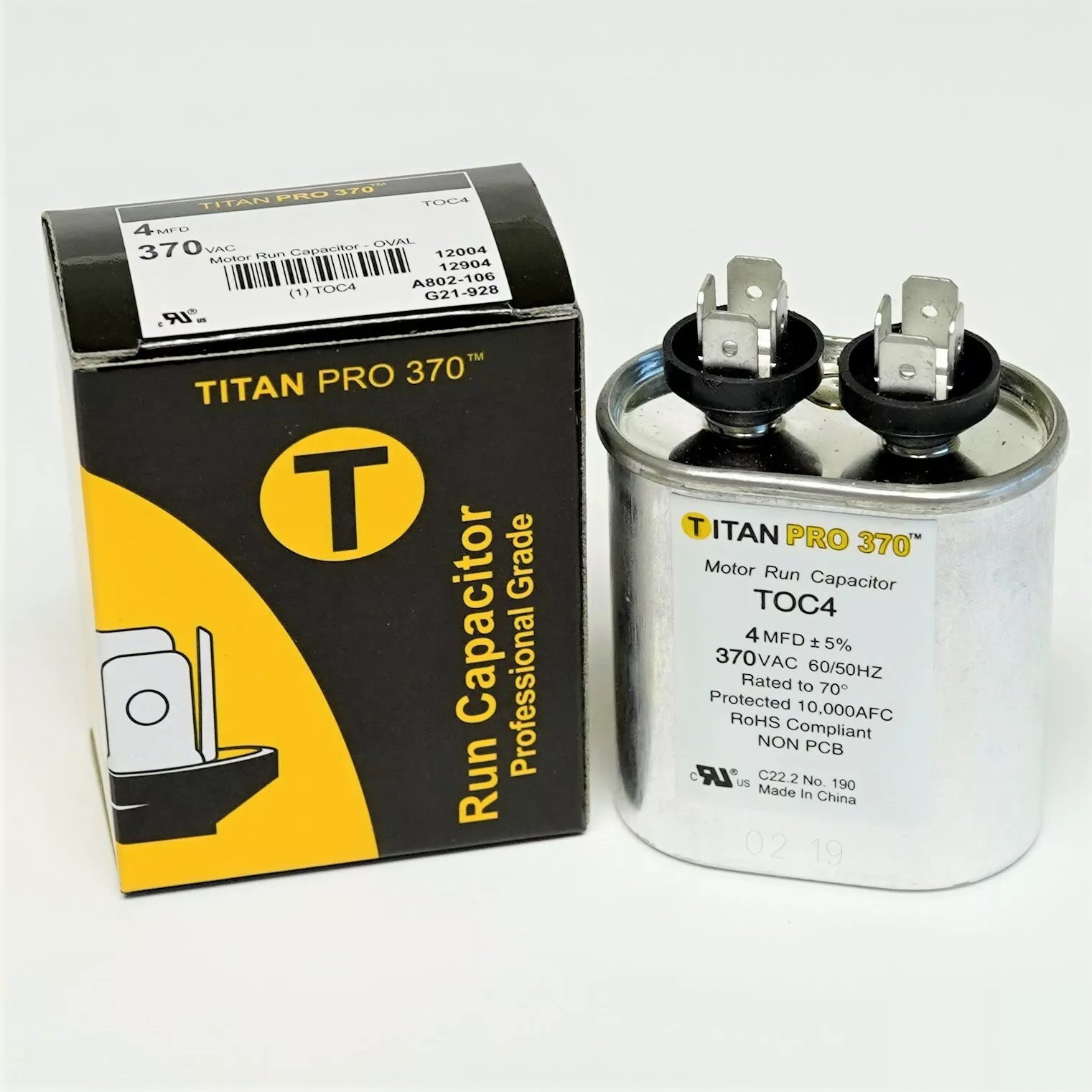 Titan Pro TOC4 HVAC Oval Motor Run Capacitor 4 MFD/UF 370 Volts