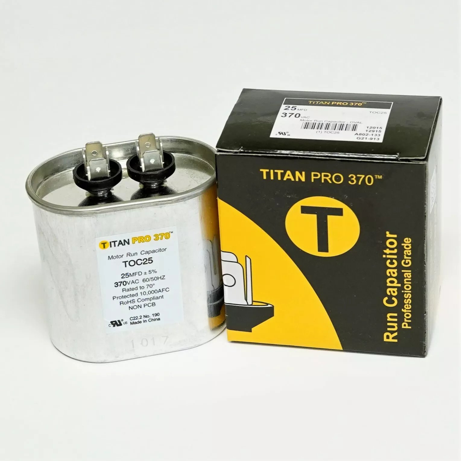Titan Pro TOC25 HVAC Oval Motor Run Capacitor. 25 MFD/UF 370 Volts