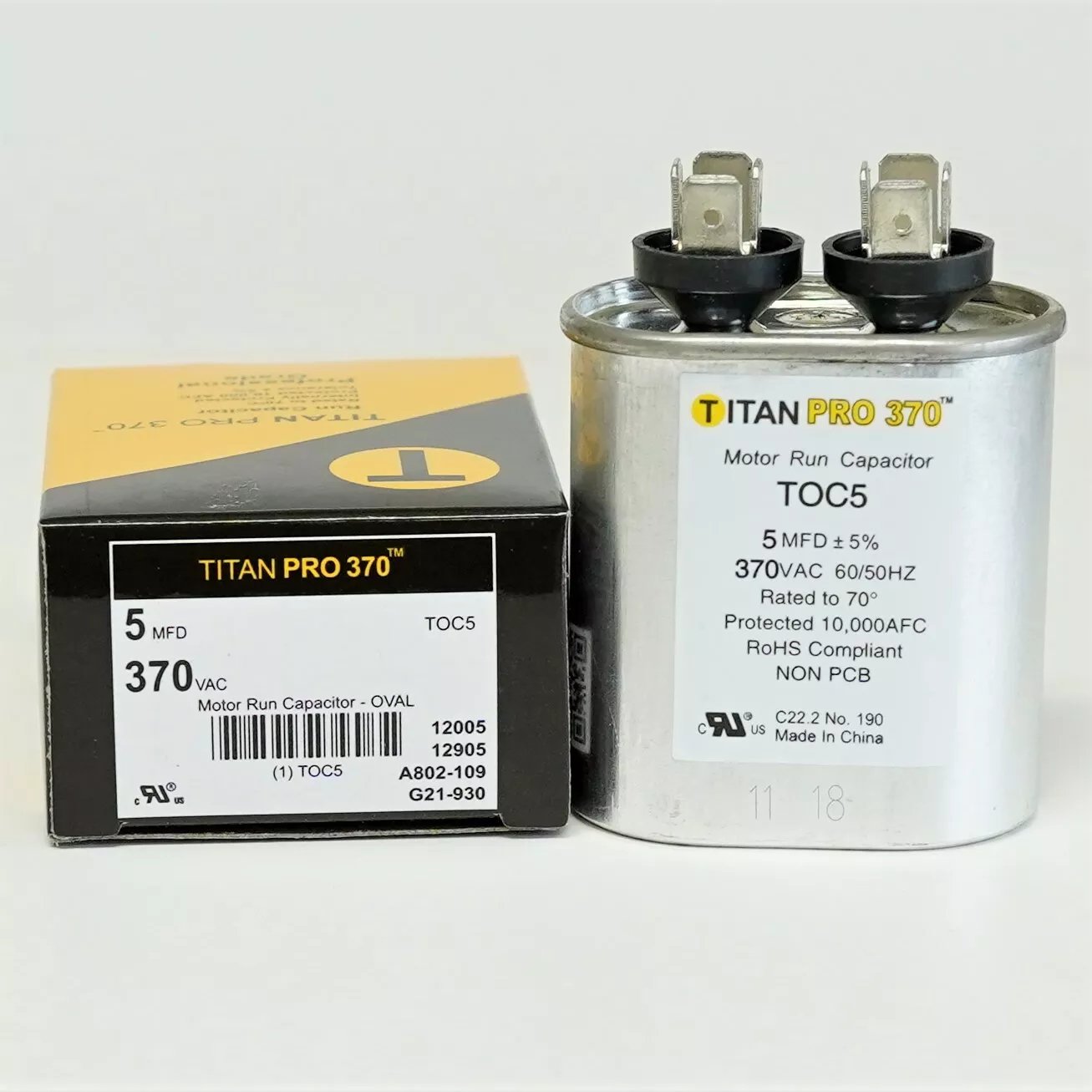 Titan Pro TOC5 HVAC Oval Motor Run Capacitor. 5 MFD/UF 370 Volts