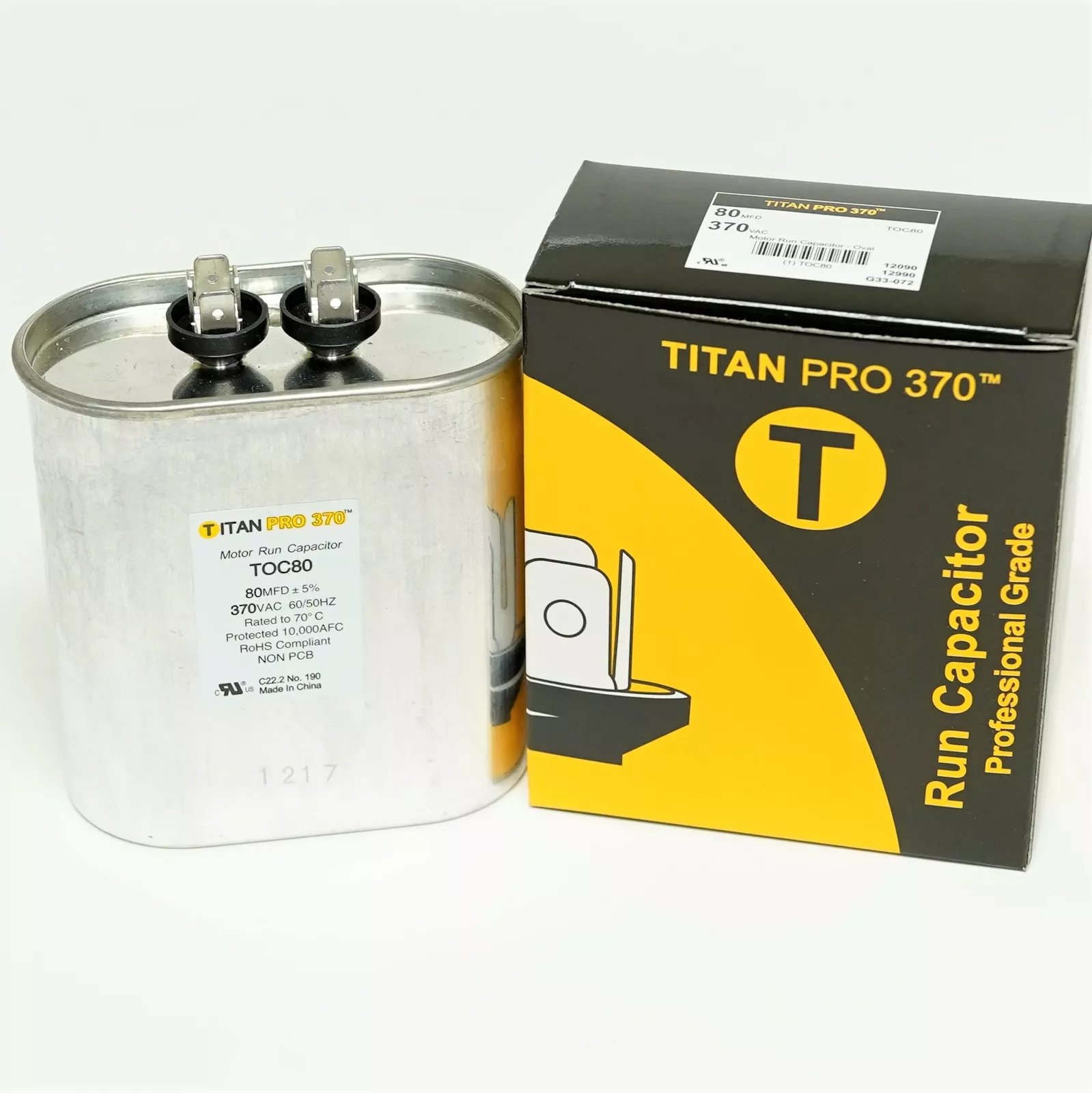 Titan Pro TOC80 HVAC Oval Motor Run Capacitor 80 MFD/UF 370 Volts