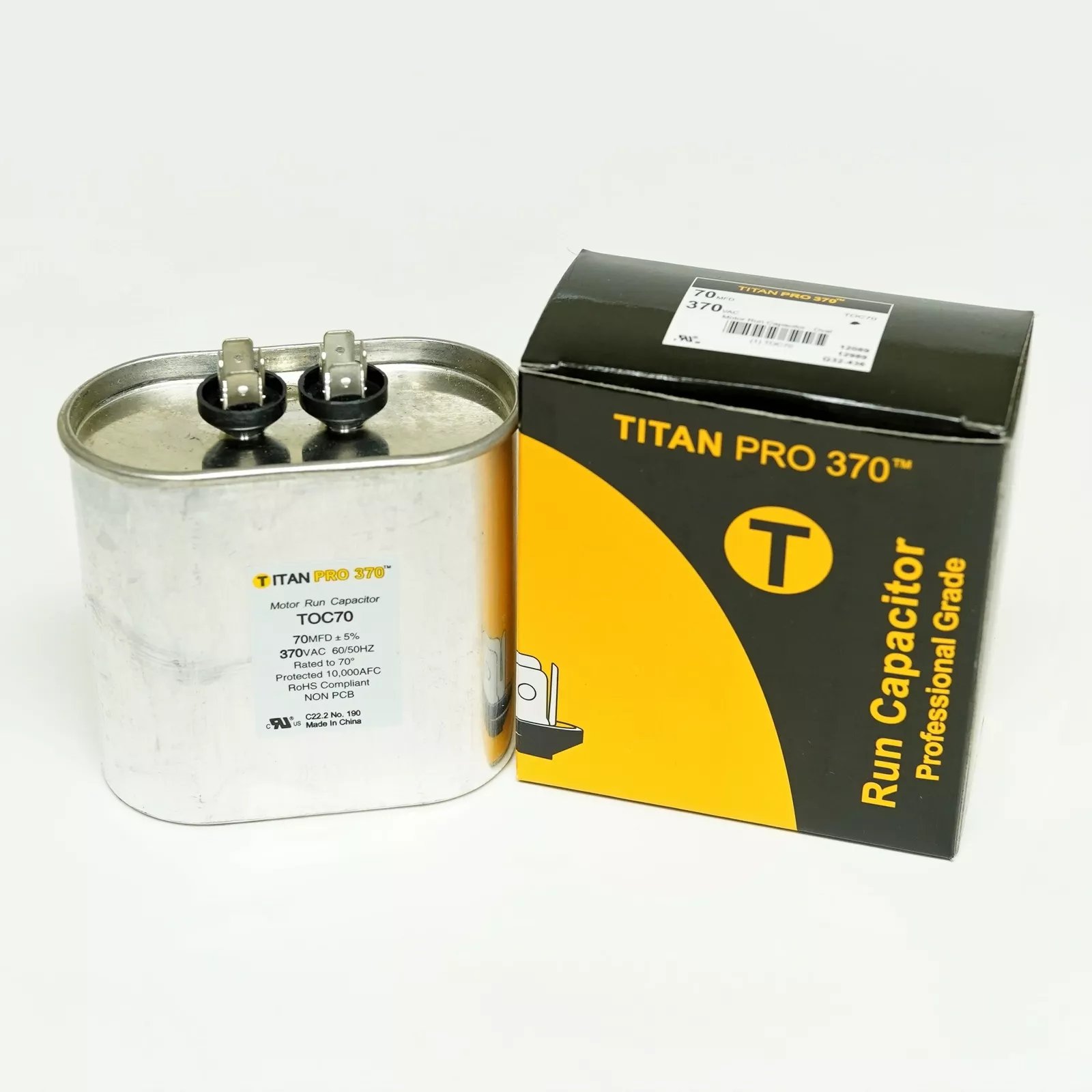 Titan Pro TOC70 HVAC Oval Motor Run Capacitor. 70 MFD/UF 370 Volts