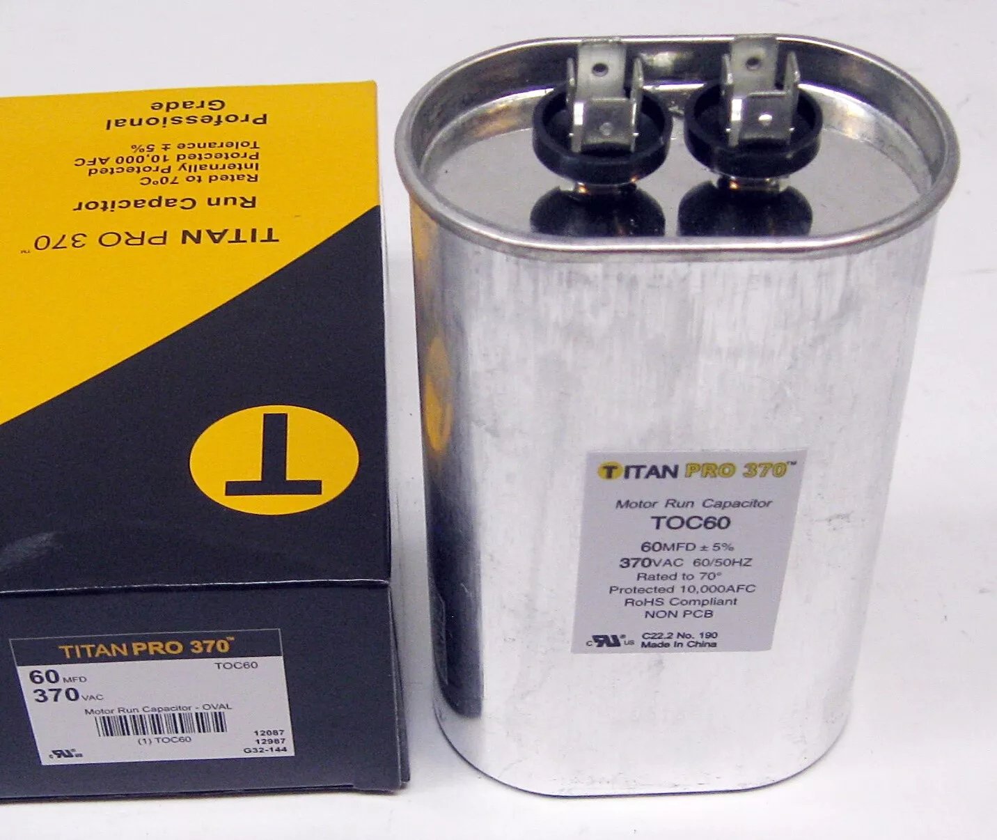Titan Pro TOC60 HVAC Oval Motor Run Capacitor. 60 MFD/UF 370 Volts