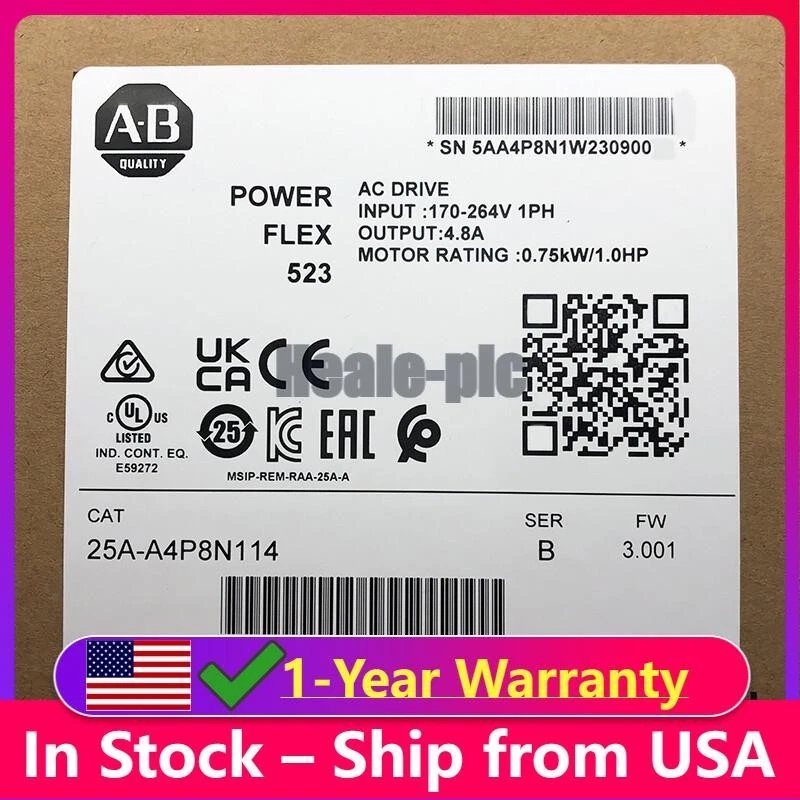 25A-A4P8N114 PowerFlex 523 0.75kW (1Hp) AC Drive New AB 25AA4P8N114 US Free Tax
