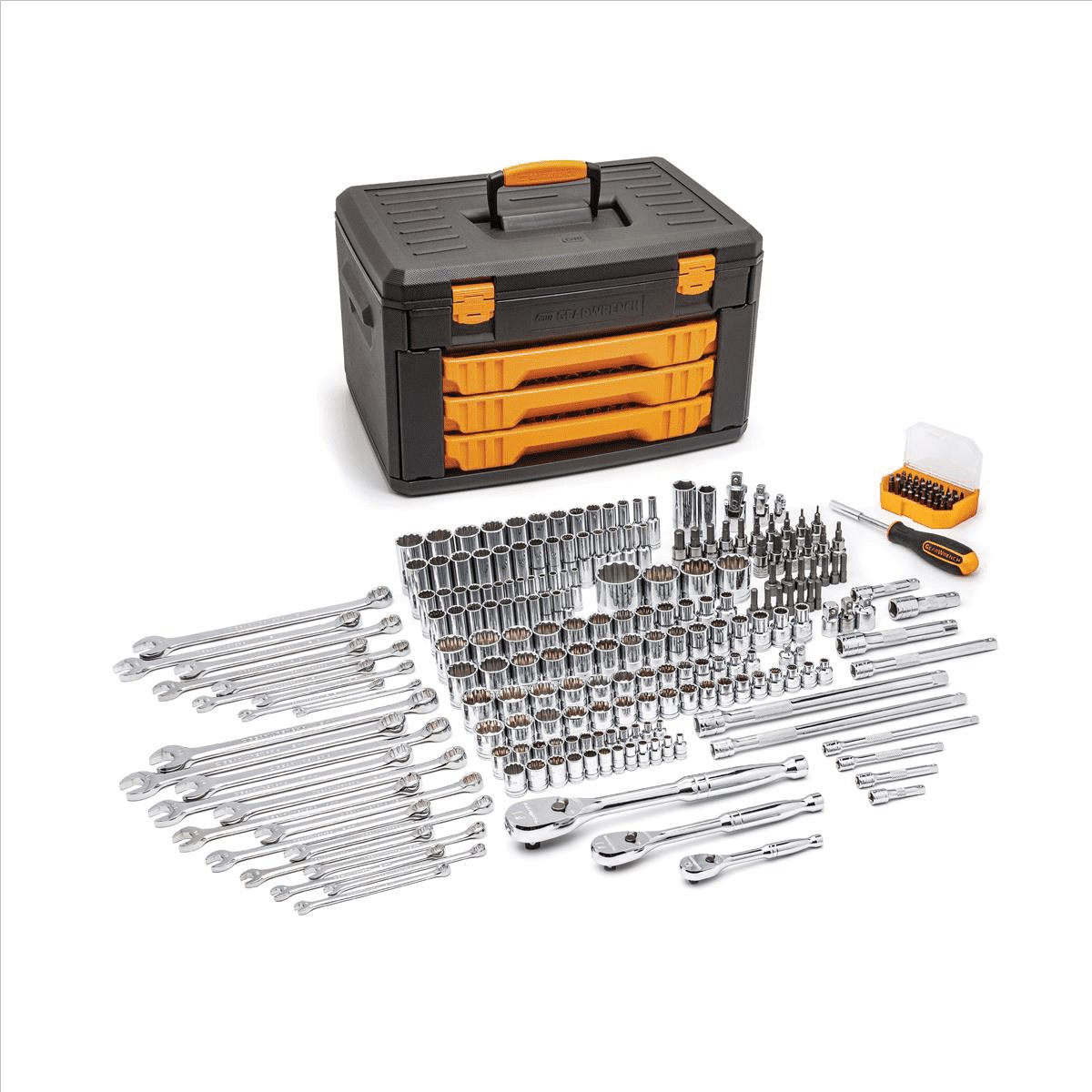 GearWrench 80972 243-Piece 1/4, 3/8, 1/2″ Drive 12-Point Socket & Tool Set
