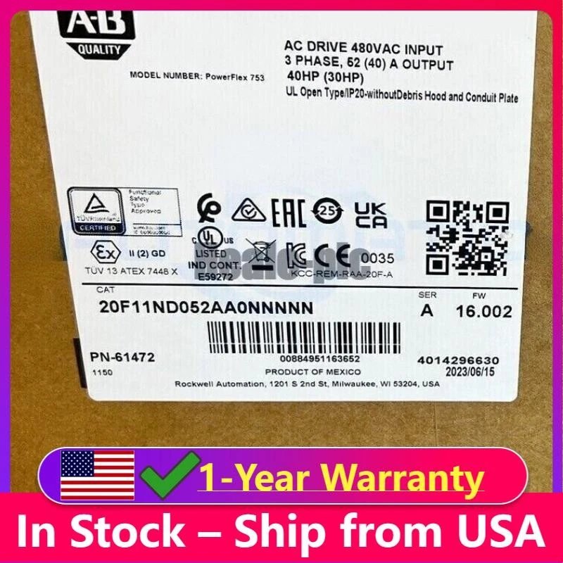 New Allen-Bradley 20F11ND052AA0NNNNN PowerFlex753 AC Drive US Free Tax